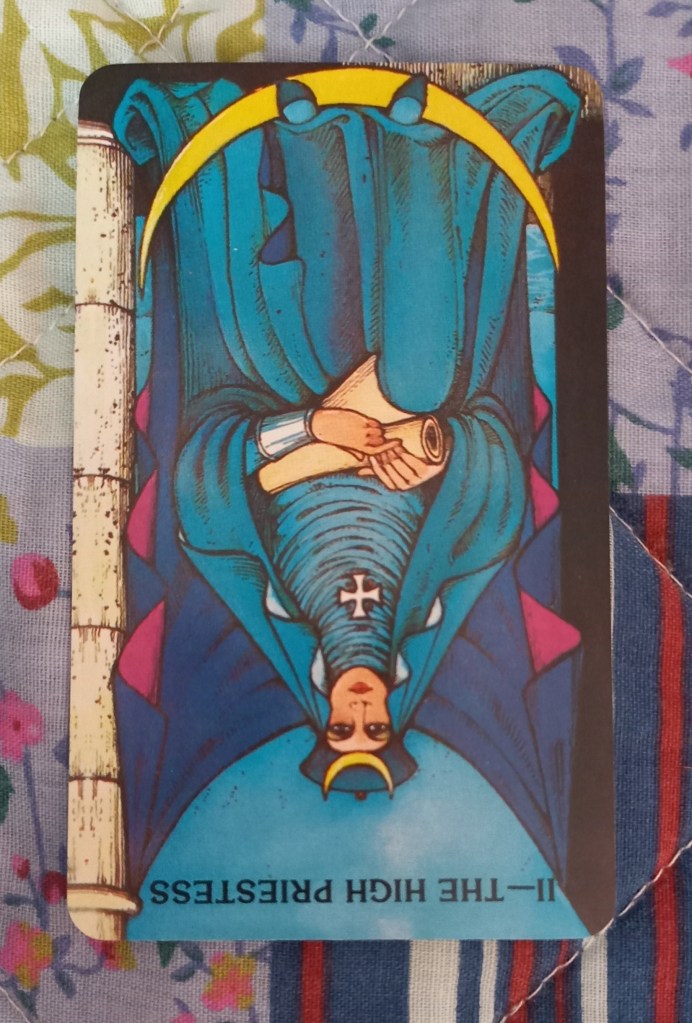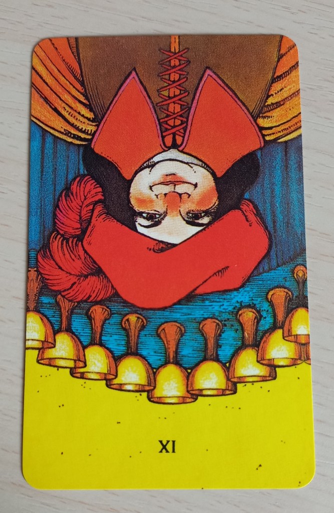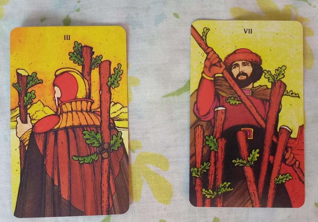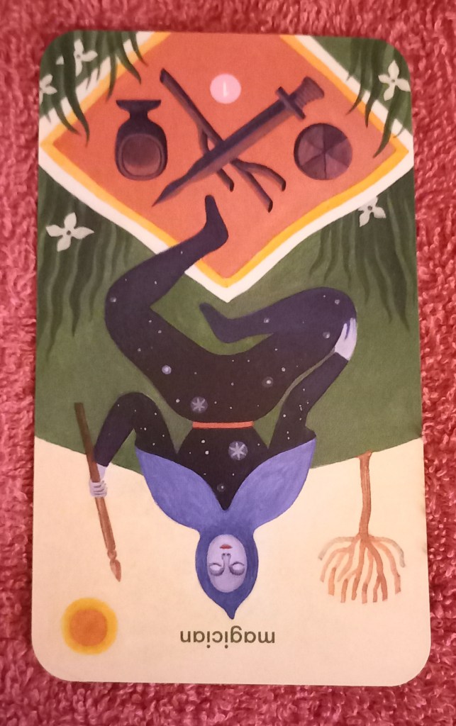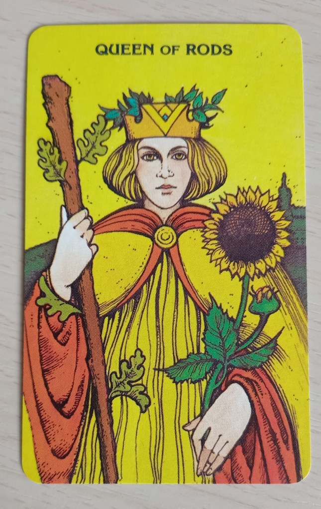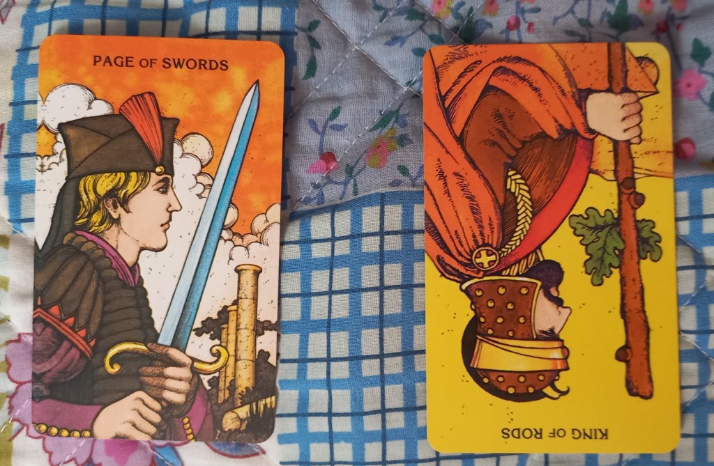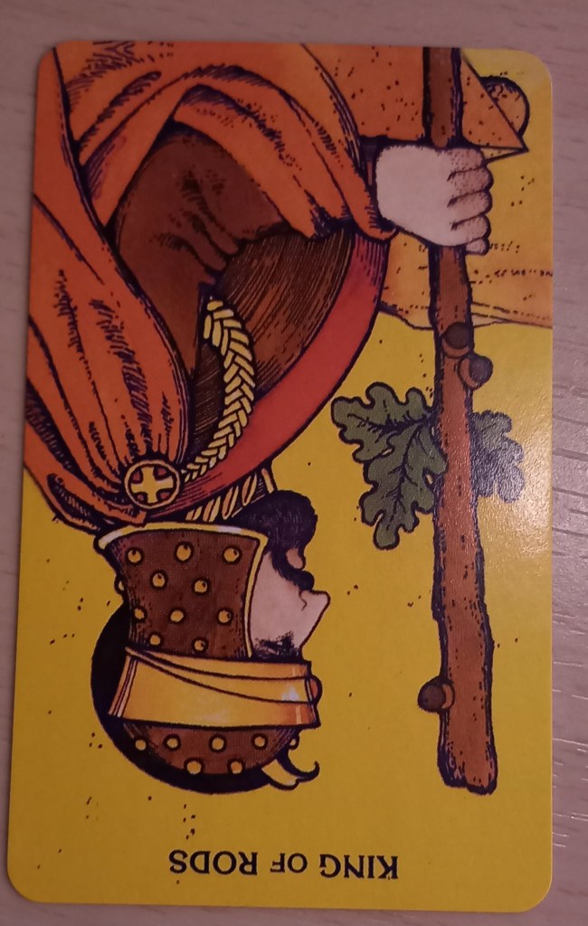 Card 2: …will allow me to… King of Wands/Rods reversed- be pushy, be the boss, be cut-throat and reflect on what kind of authority I’m comfortable exerting.