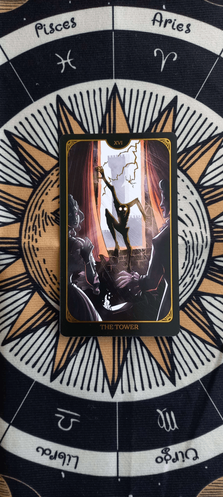 Dia de los Muertos- What can you do today to show respect and care for those passed? Card: The Tower. I can accept that everything comes to an end, that ultimate destruction is inevitable and the start of a new beginning, no matter how painful it may be. Deck used: The Literary Tarot.
